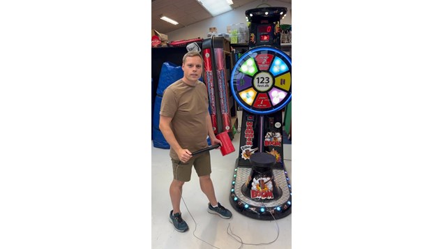 I morgen starter vores kæmpe fødselsdagssalg hvor du udover at få -21% på alle varer også kan opleve et væld af aktiviteter Daniel troede han bare skulle have noget slusch ice sirup, men kom hjem med halvdelen af 123fest så udover hoppeborg, slusch-ice, popcorn og fadøl - kan du fra Torsdag til søndag simpelthen også vinde gavekort på den her skønne hammermaskine Alt man skal gøre er at slå mellem 50-100 så får man et lod i puljen hvor vi for hver dag udlodder et gavekort på 500,- til butikken - man kan vinde engang og alle vinderne trækkes mandag d.15 september vi glæder os til at se jer til et par skønne dage Fredericia Shopping